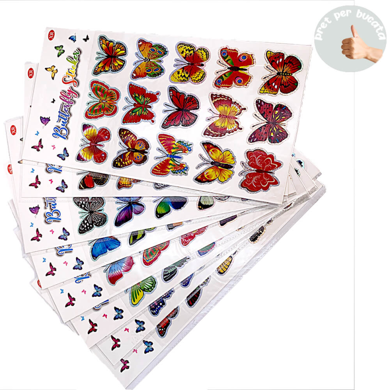 - Stickere cu fluturi multicolori viu colorati - un produs de calitate importat in exclusivitate si distribuit in Romania de Jad Flamande S.R.L.