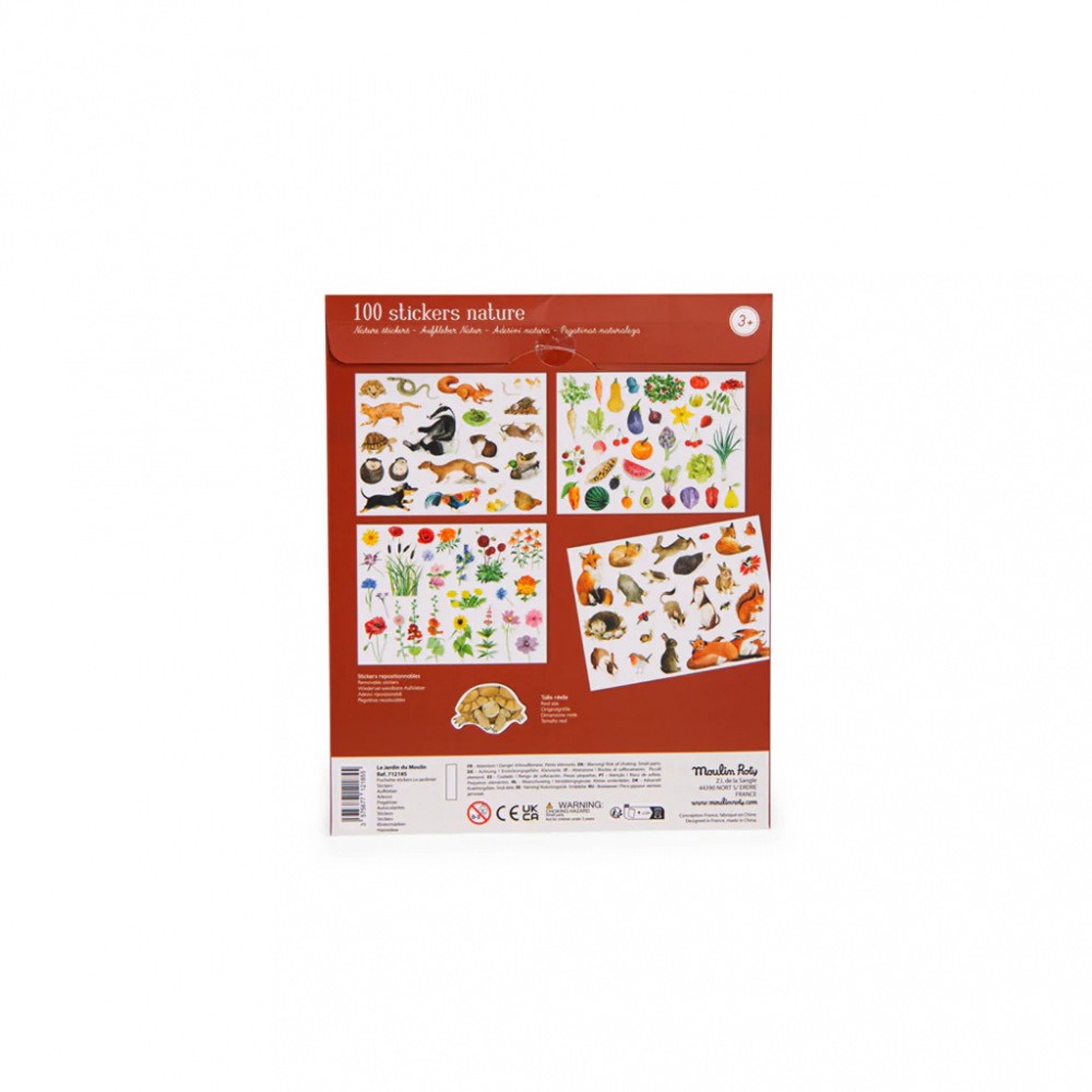 Set cu autocolante repoziționabile din colecția Le jardin du Moulin, o activitate creativă și distractivă cu 133 de autocolante pe tema naturii.