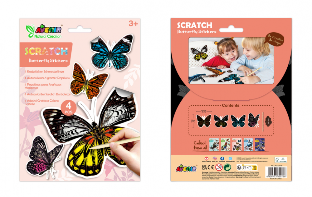 - Cadou Perfect: Cu designul său atrăgător și efectul captivant de răzuire, setul de abțibilduri razuibile - Fluturi este cadoul ideal pentru copiii pasionați de natură și de artă creativă.