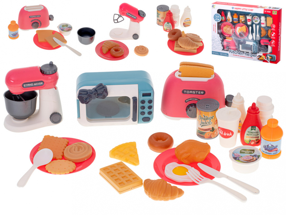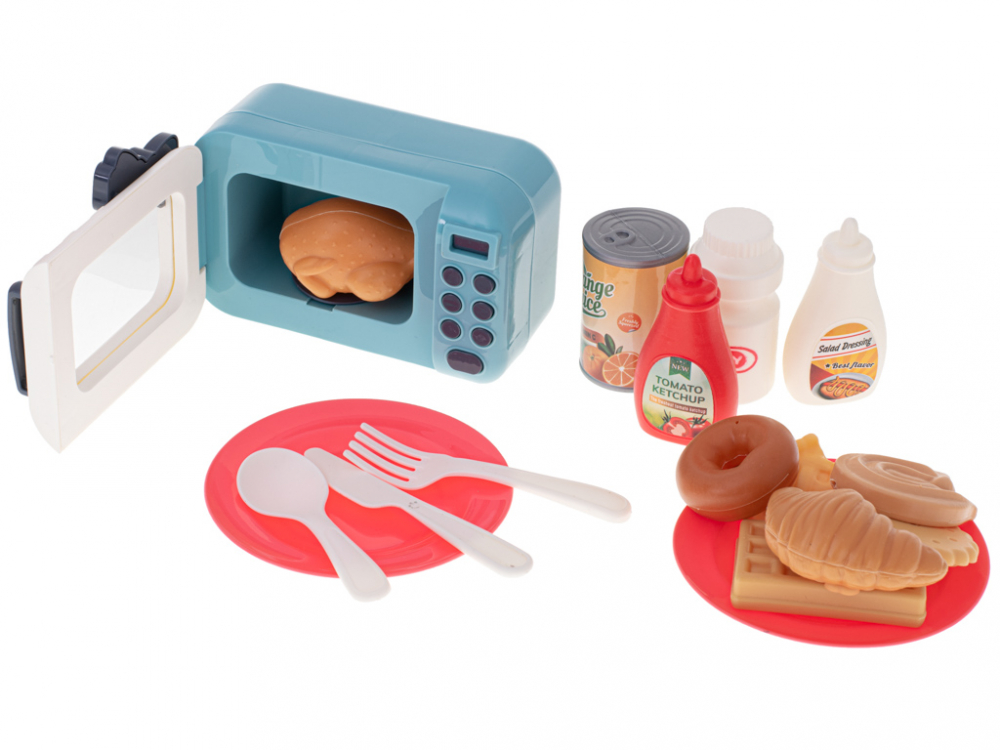 Accesorii de bucatarie pentru copii Ikonka, cuptor cu microunde, toaster, mixer, legume si accesorii incluse