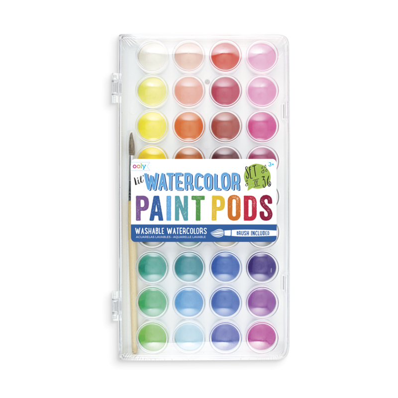 Un set frumos de acuarele, care include 36 de culori și o pensulă cu vârf fin.