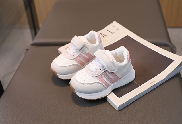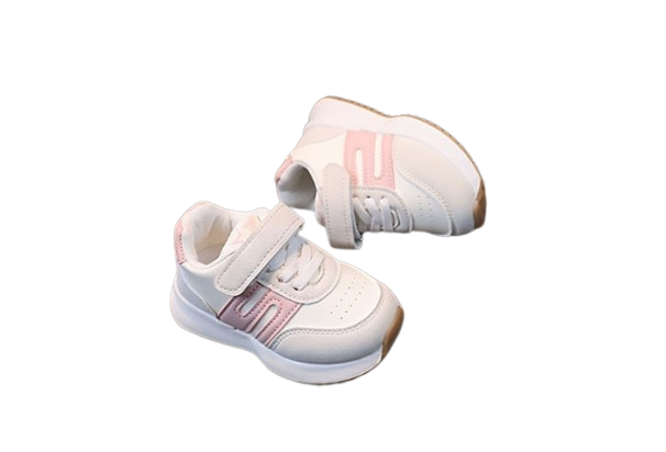 Adidasi pentru fetite, din material tip piele ecologica, se inchid cu sireturi din elastic si bareta cu arici.