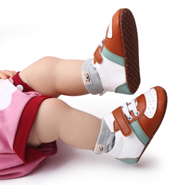 Adidasi albi cu maro si verde pentru copii 3-6 luni marime 18