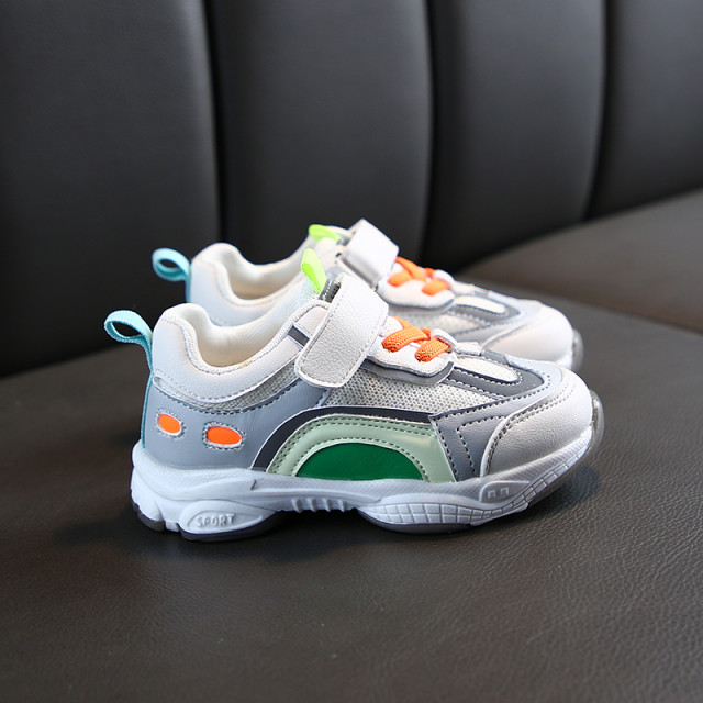 Adidasi pentru copii, din material textil cu insertii colorate de piele ecologica.