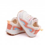 Adidasi pentru fetite, din material textil cu insertie de material tip piele ecologica, se inchid cu sireturi din elastic si bareta cu arici intr-o parte.