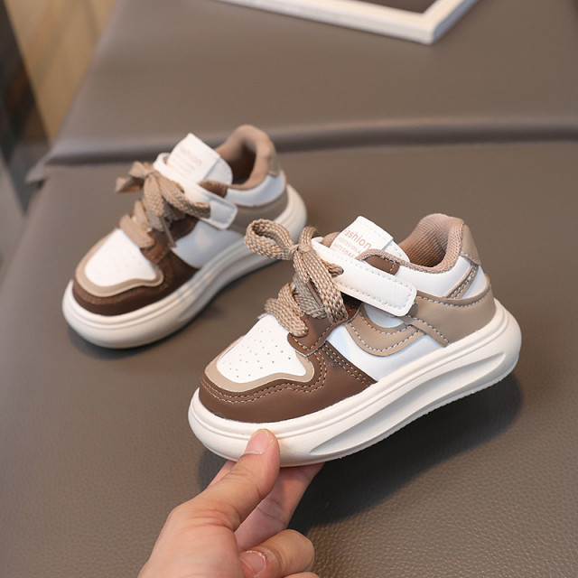Adidasi pentru copii, din material tip piele ecologica, se inchid cu sireturi si bareta cu arici intr-o parte.