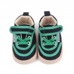 Adidasi pentru bebelusi, de culoare neagra si verde, ideali pentru plimbari confortabile si sigure.