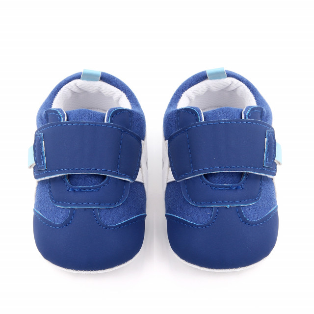 Adidasi pentru bebelusi din material textil cu insertie de material tip piele ecologica. Se inchid cu bareta cu arici intr-o parte.