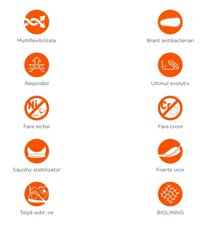 - Talpa flexibila: flexibila si antiderapanta pentru a permite miscarea naturala a piciorului.