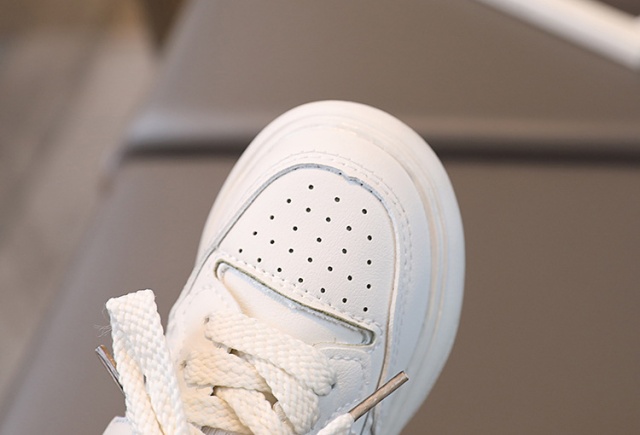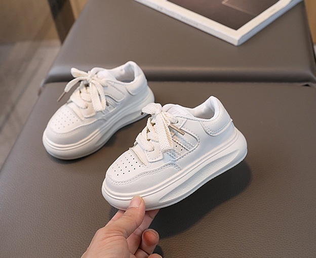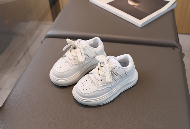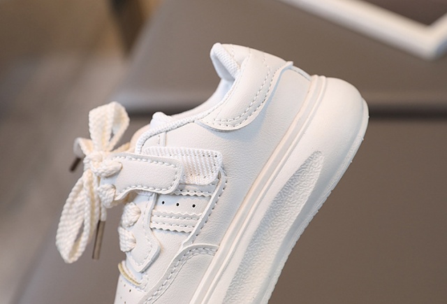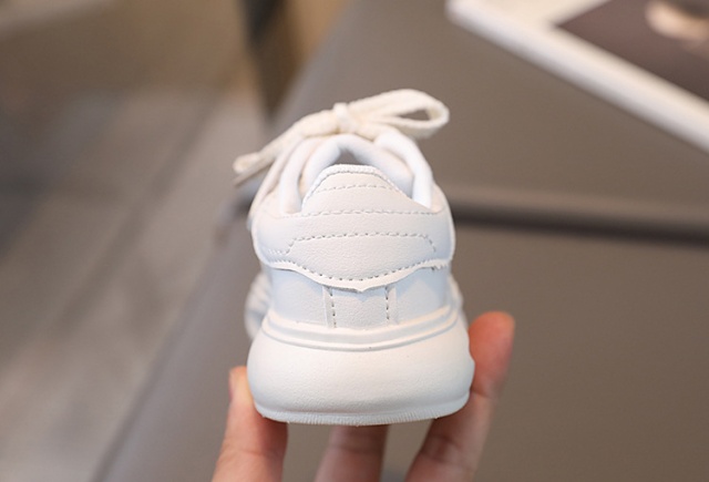 Adidasi pentru fetite, din material tip piele ecologica, se inchid cu sireturi.