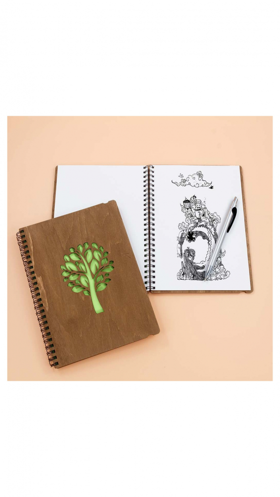 Agenda cu coperta din lemn marime A5 cu 40 pagini model Copac;