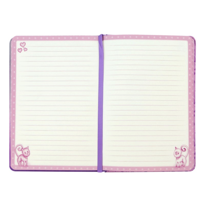 - Agenda are 192 de pagini dictando colorate, cu marginea foilor roz, cu buline albe. Pe colturile paginilor gasim desenate pisicute si inimioare.