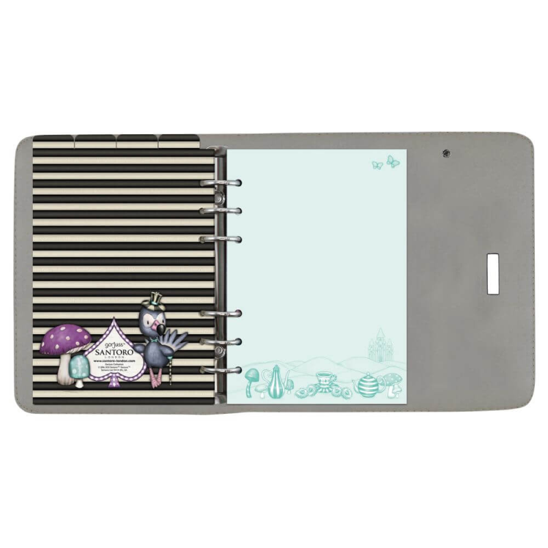 Pentru colectionari de agende am pregatir aceasta fantastica agenda din pliele ecologica cu inchidere speciala de la Santoro colectia Wondeland design A Little More Tea.