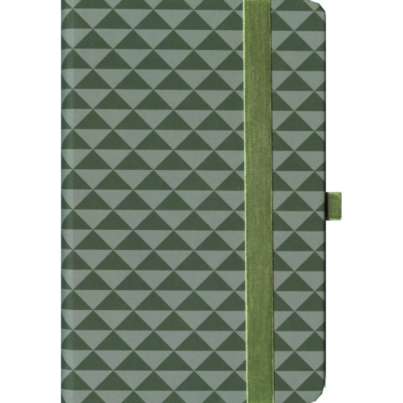 Agenda Metropoli banda verde – agenda de dimensiuni mici - ornata simplu, coperti cartonate embosate ce prezinta un model repetativ cu triunghiuri, dotata cu o banda elastica verde pentru inchidere asigurata, ideala pentru a-ti nota gandurile si ideile!