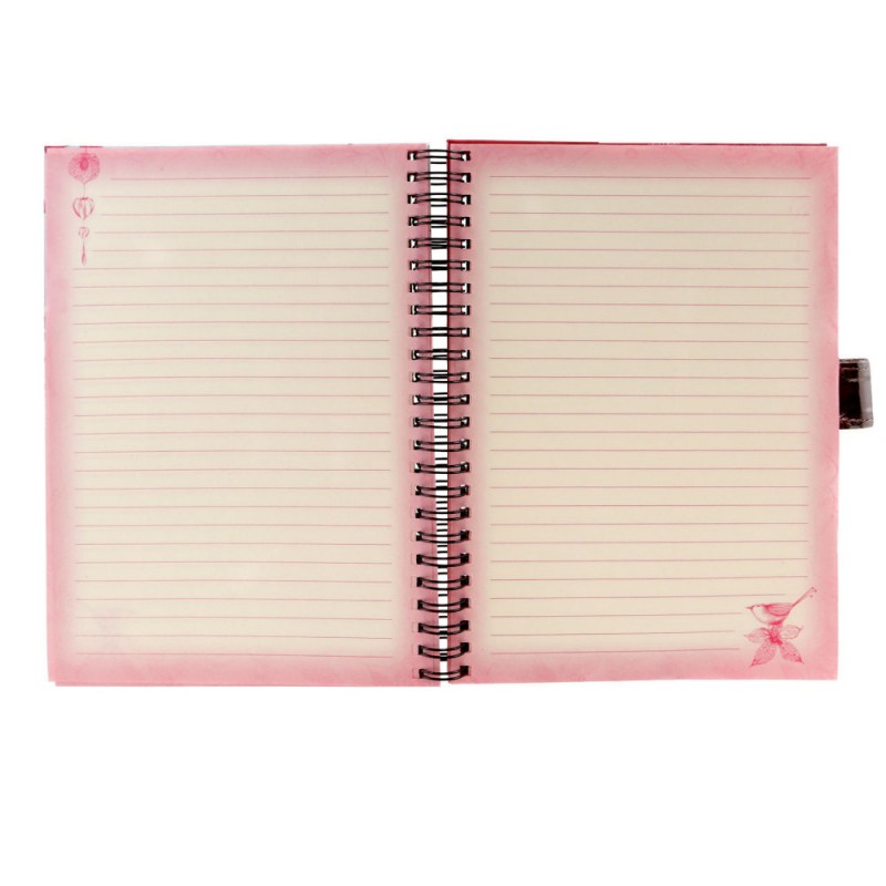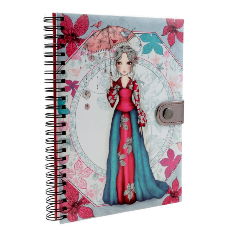 Agenda de la Santoro are pagini cu liniatura dictando, iar ca sistem de inchidere este prevazuta cu capsa si o curelusa din piele.