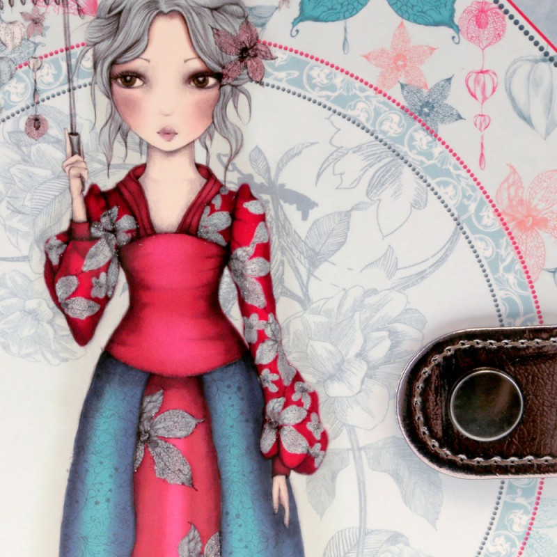 Coperta agendei Mirabelle Parasol are un design specataculos, colorat in nuante pastelate de albastru, turcoaz si magenta.Simpatica fetita Mirabelle este ilustrata pe ambele coperti.