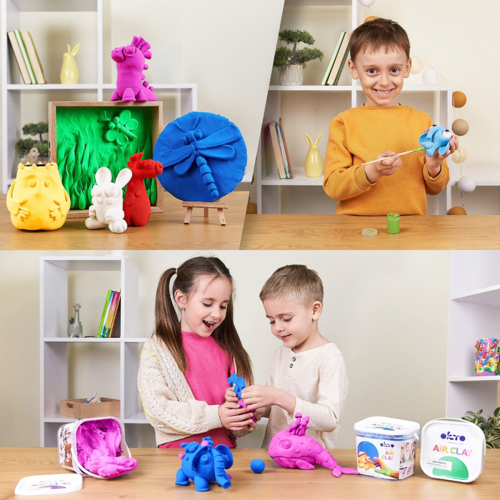 Setul contine 200g cu o singura culoare de argila usoara gata de modelat.