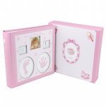 Album foto baby personalizabil, 200 poze, 10x15, amprente bebelus, cutie culoare roz