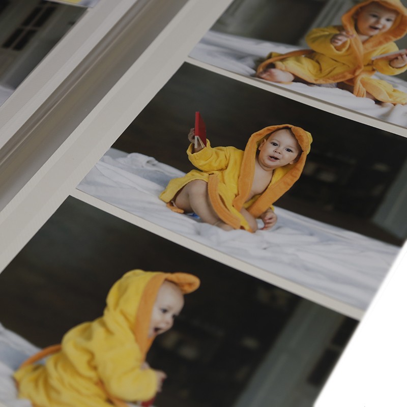 Pentru a lipi fotografiile trageti usor folia transparenta din interior spre exterior. Lipiti fotografiile dorite pe suprafata autoadeziva dupa care acoperiti fotografiile cu folia transparenta.