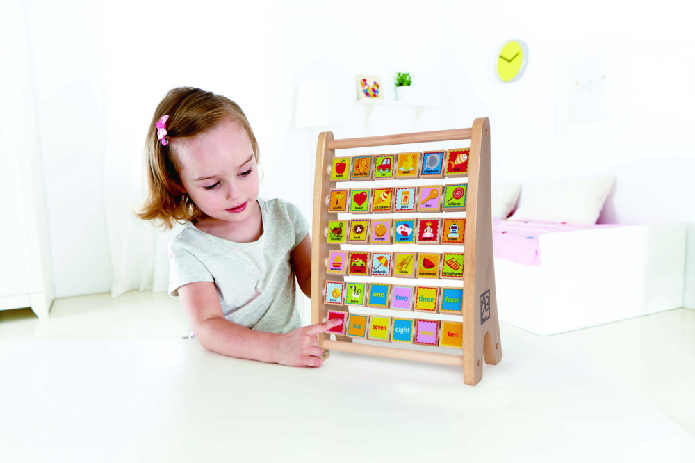 Micutii se vor bucura in timp ce descopera alfabetul cu litere si cifre capricioase care se rotesc pe acest abac.
