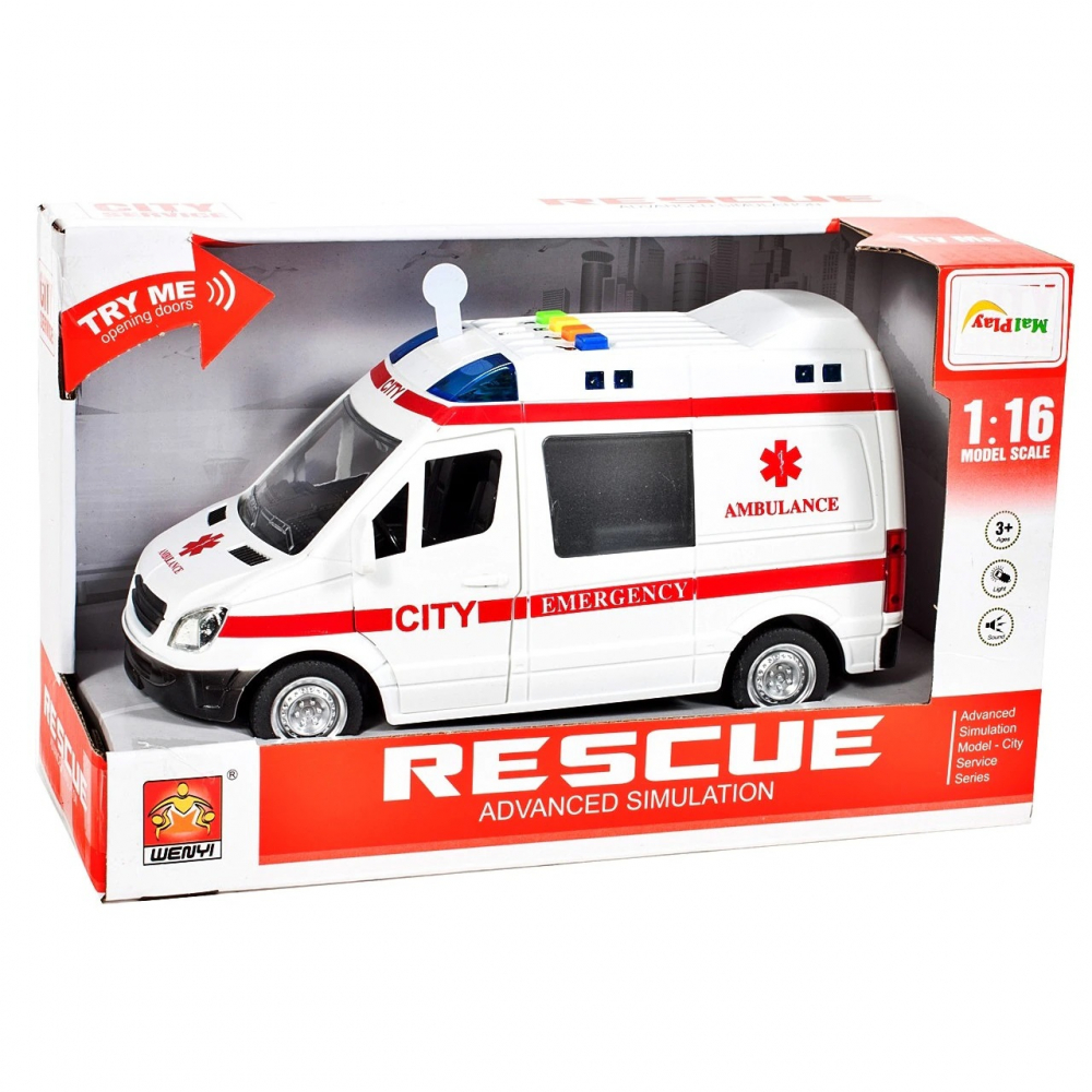 Ambulanta de jucarie pentru copii MalPlay, cu sunete si lumini scara 1:16