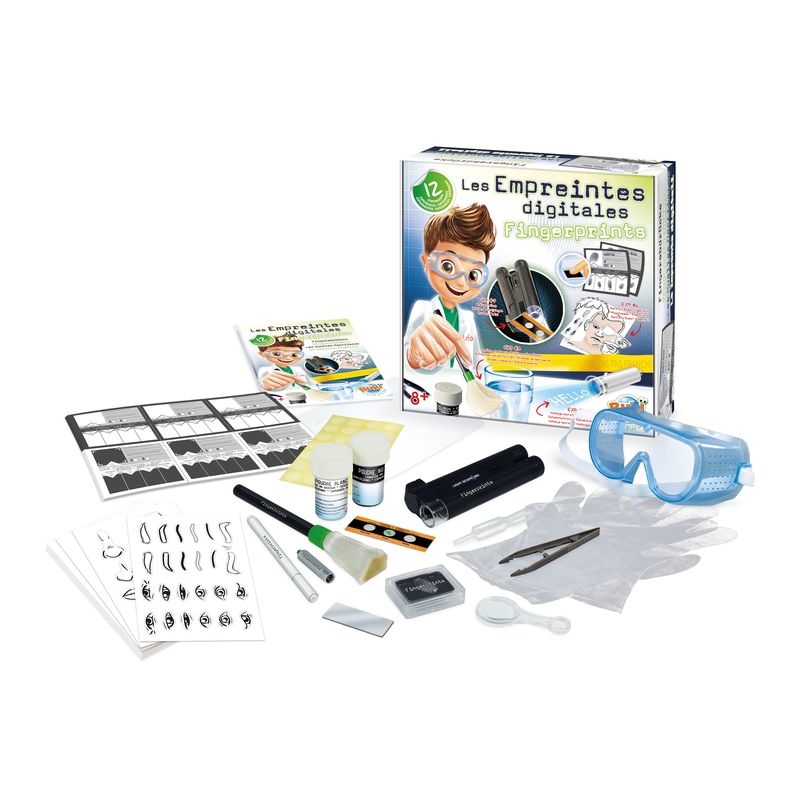 În acest kit gasiti 12 experimente cu ajutorul carora copiii pot descoperi secretele stiintei criminalistice: pot gasi si compara amprentele, pot analiza indicii, pot construi un portret al suspectului si pot scrie propriile mesaje secrete.