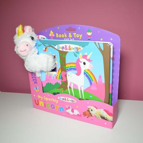 Setul contine o jucarie de plus sub forma unui unicorn pufos si o carticica cu rime in limba engleza.
