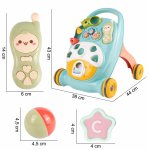 * Produsul pe care il prezentam combina functiile unui impingator, ale unui panou educational si ale unui sortator. Caruciorul, pe care il recomandam tuturor copiilor cu varsta peste 6 luni, este un excelent ajutor in invatarea mersului independent.
