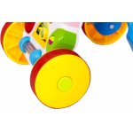 - Distractia este garantata de partea din fata a jucariei, vacuta care dispune de melodii, zornaitoare, oglinda si elemente cu sunete.