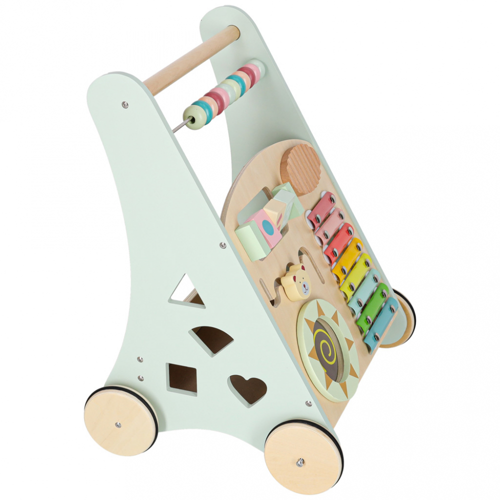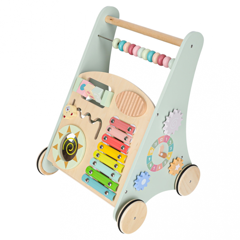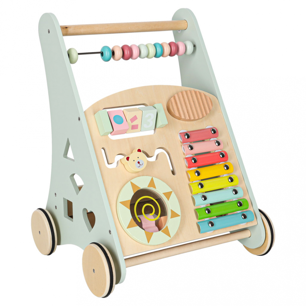 Siguranta si Durabilitate: Lemnul cu finisaj neted si margini rotunjite asigura un joc sigur. Varietatea de functii mentine interesul copilului pe termen lung.