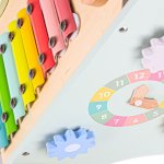 Stimulare Senzoriala si Cognitiva: Blocurile colorate, sunetele muzicale (cinele/xilofon) si texturile variate stimuleaza vederea, auzul si simtul tactil.