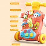 Antepremergator pentru copii, Malplay orange, multifunctional 3in1, cu panou educativ-interactiv detasabil, telefon, angrenaje rotative, roti antiderapante, ghidon inaltime ajustabila, dimensiune 44 x 48 x 48 cm