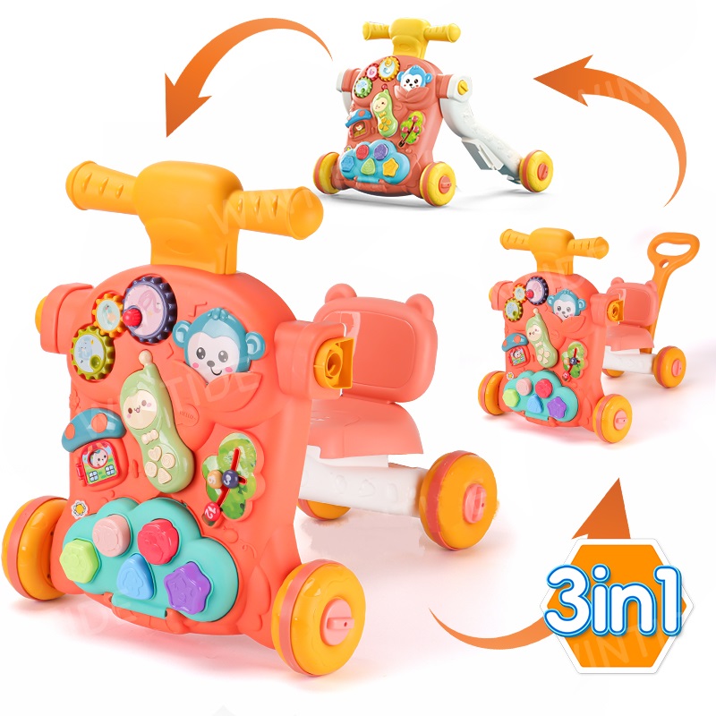 Cu 3 moduri de utilizare (Walker, Push Car, Scooter), panou cu jocuri de coordonare, sortator de forme si labirint, asigura-i micutului tau o dezvoltare armonioasa a abilitatilor motorii si cognitive, de la primii pasi la joaca activa!