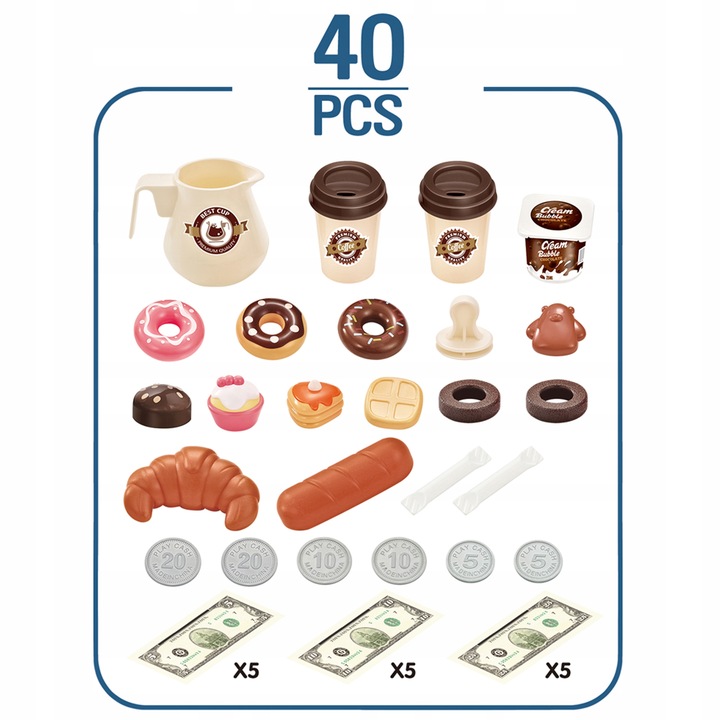 Toate accesoriile precum bani, fursecuri si dulciuri sunt incluse in set.