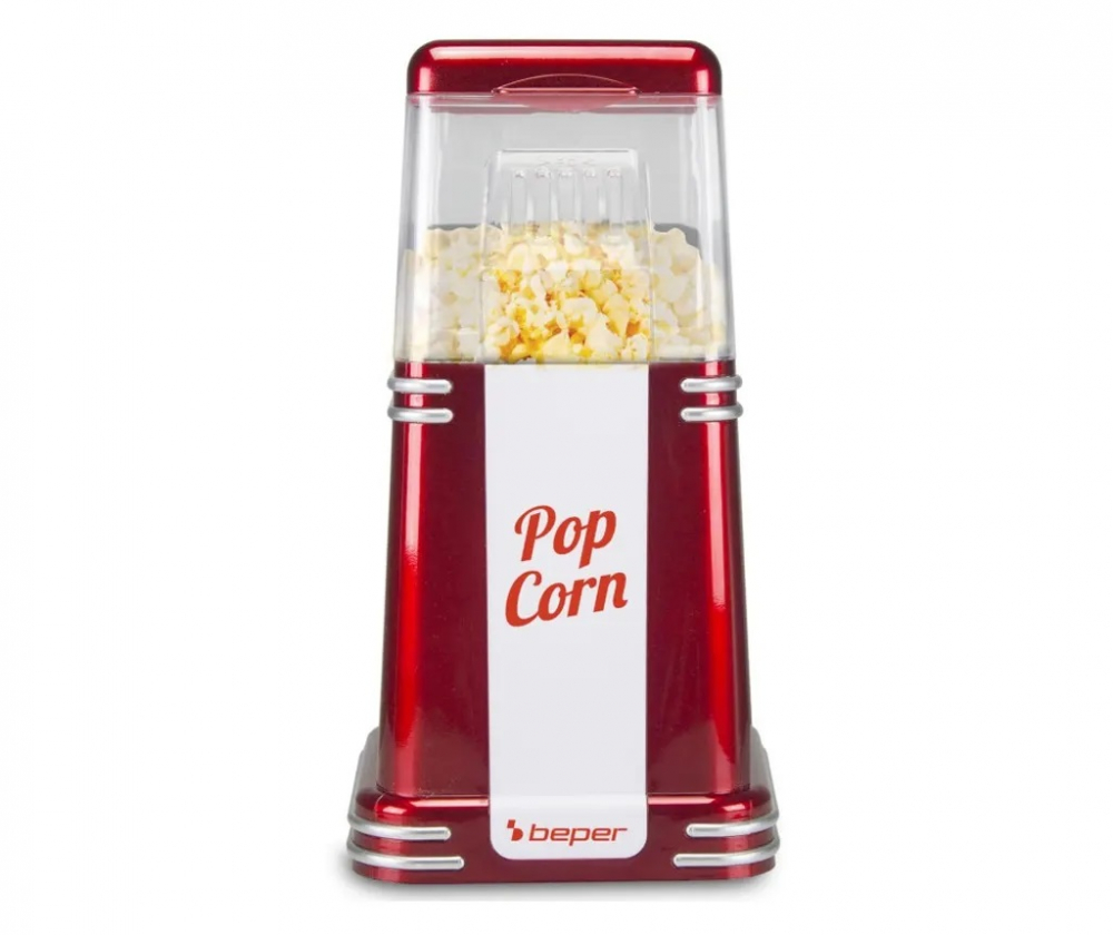Aparat de facut popcorn cu aer cald Beper 90.590Y, 1200 W, 260 ml, design compact, retenie de caldura, rou/alb