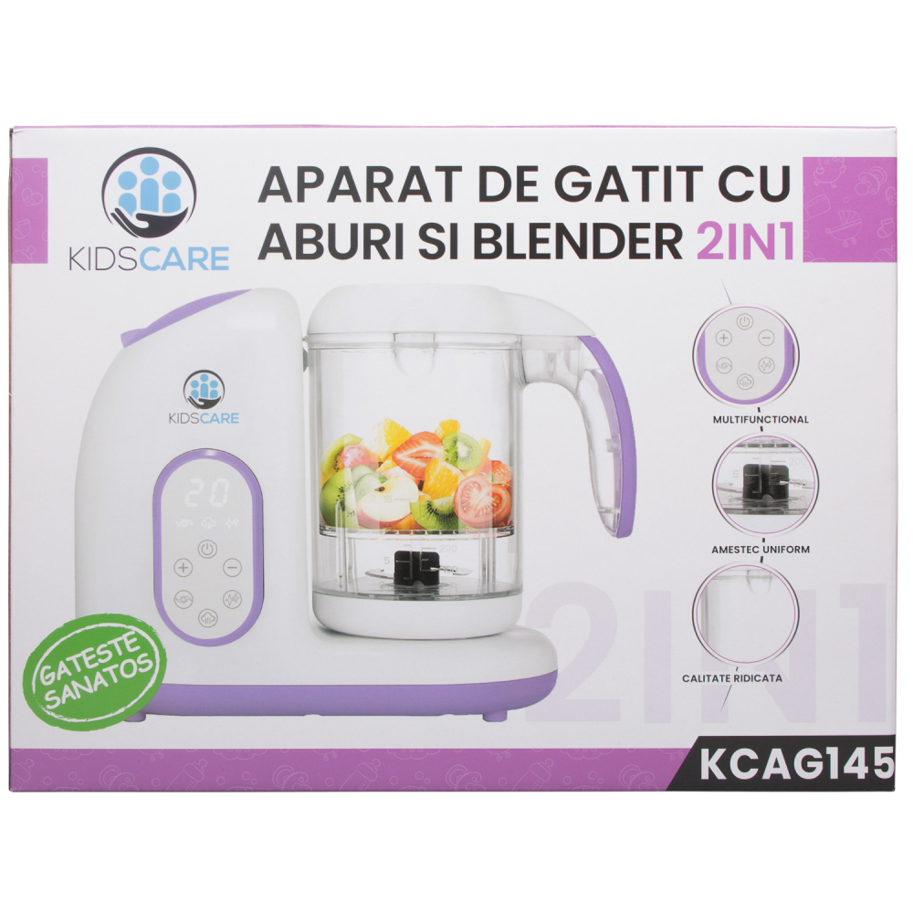 Caracteristici Aparat de gatit 2 in 1 cu aburi si functie de blender Kidscare KCAG145: