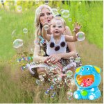 Aparat generator baloane de sapun, cu baterii si rezerva 118 ml lichid inclus, 13 x 10 x 7 cm, Bubble Blue Elephant