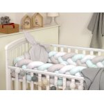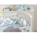 Aparatoare laterala pat Bumper impletit bumbac alb - gri - mint 340x21 cm