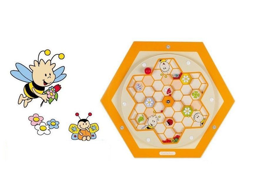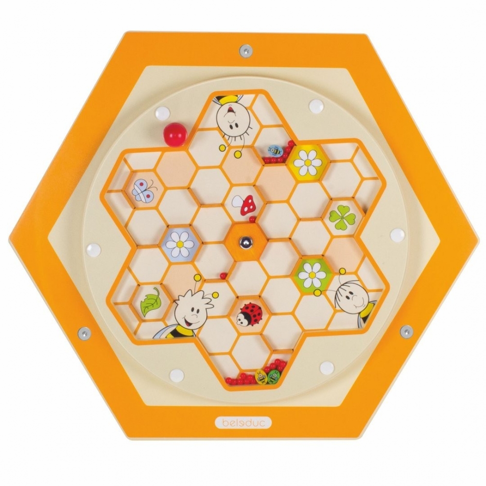 Iata labirintul polenului! Jucaria este redata sub forma unui labirint rotativ cu albine si polen