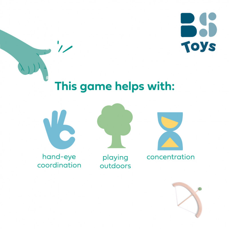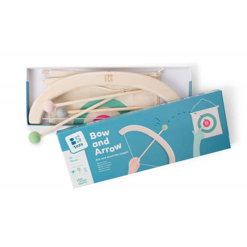 Jocul cuprinde: 1 arc 40×13 cm, 3 sageti 26,5 cm, 1 tabla de tinta 26×29,5 cm