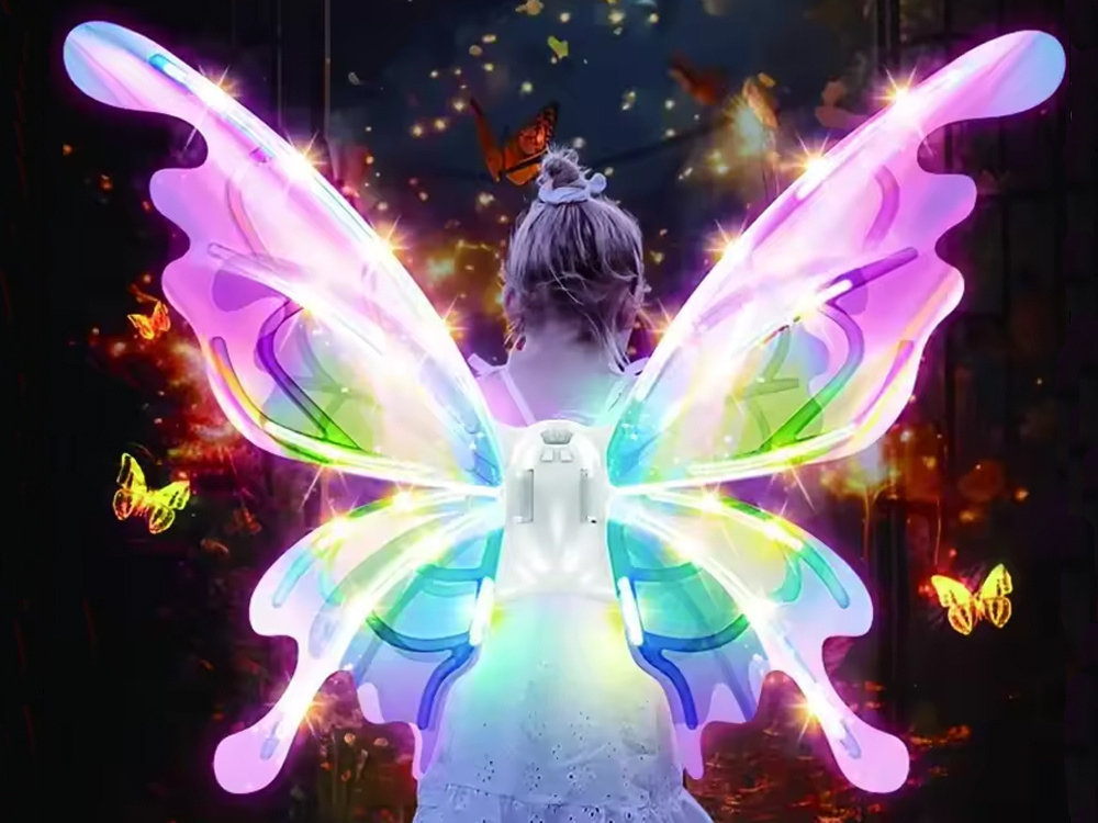 Cu o forma de fluture urias, aripile imita stralucirea si miscarea celor reale, transformand instantaneu orice micuta in zana mult visata.