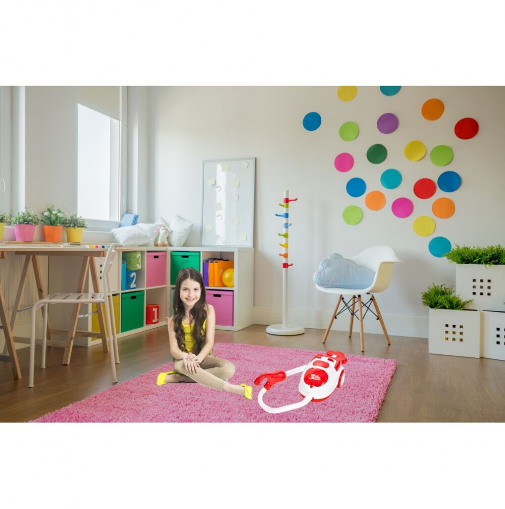 Aspirator de jucarie pentru copii cu Maner de sustinere, Sunete, Lumini, si bilute din polistiren, 9 x 13 x 12 cm, My Home Red