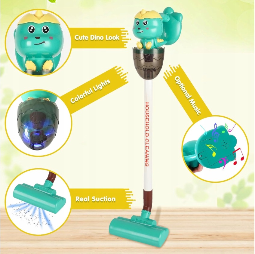 Aspirator vertical de jucarie cu un mic motiv de dinozaur.Aspiratorul de jucarie Matadi este o jucarie grozava pentru fiecare copil caruia ii place sa-si imite parintii in timpul activitatilor de zi cu zi.