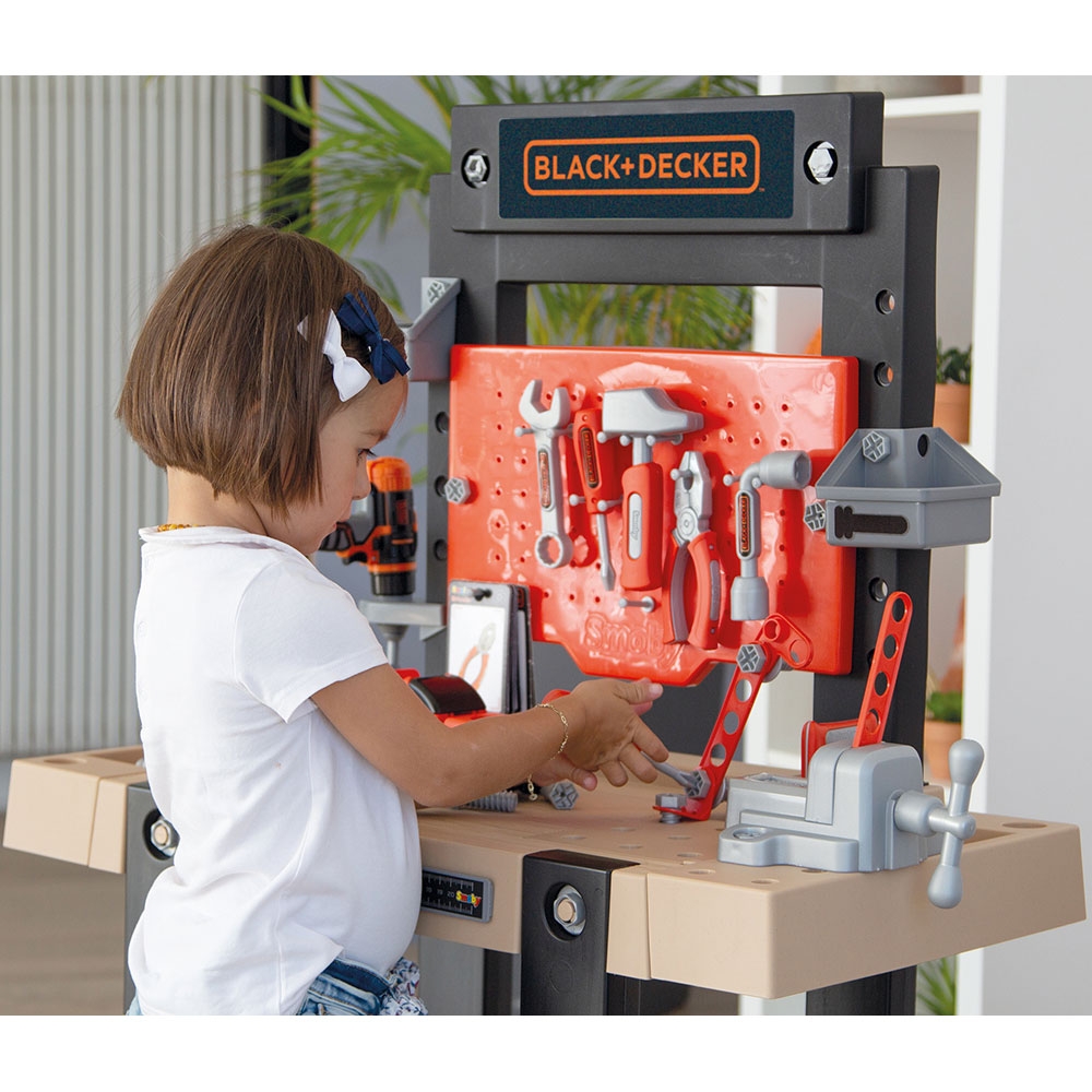 - Atelierul de lucru Smoby Black & Decker Bricolo Center cu accesorii este cadoul ideal pentru micii meseriasi de la varsta de 3 ani