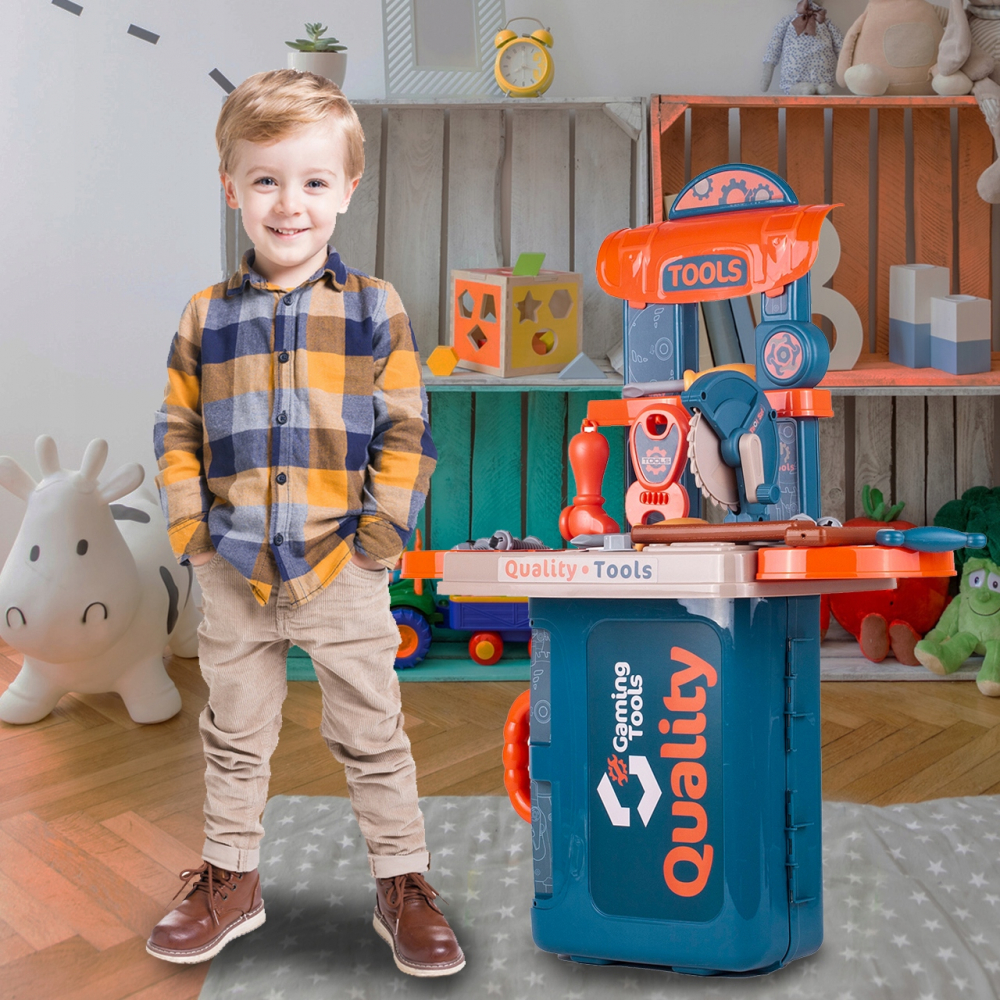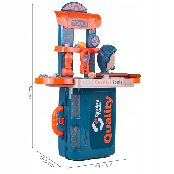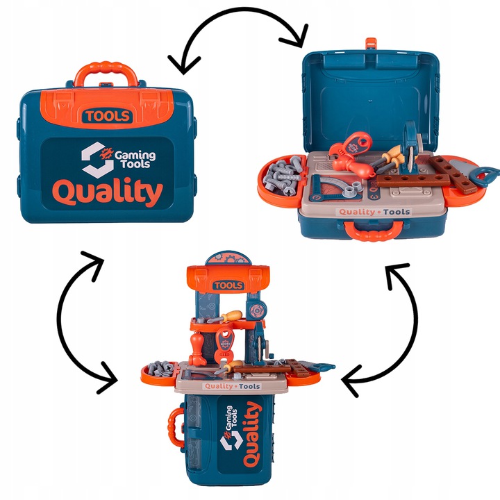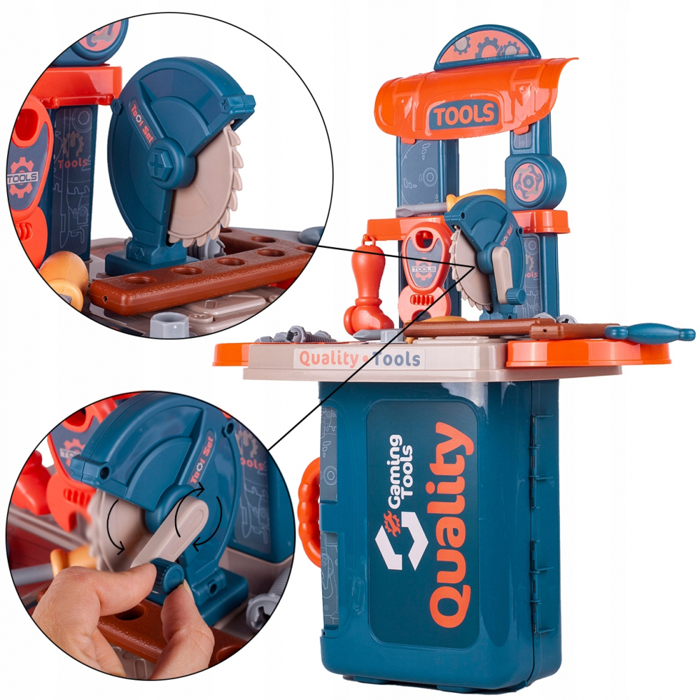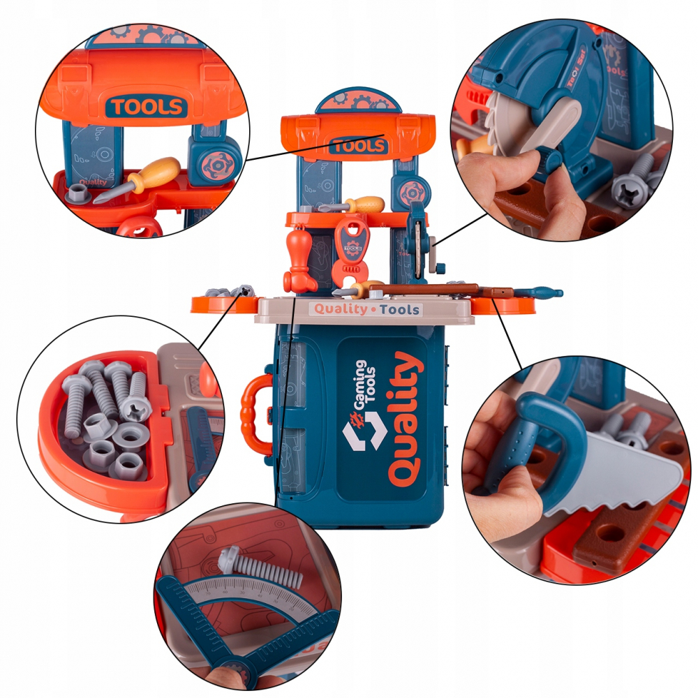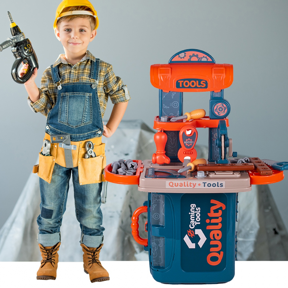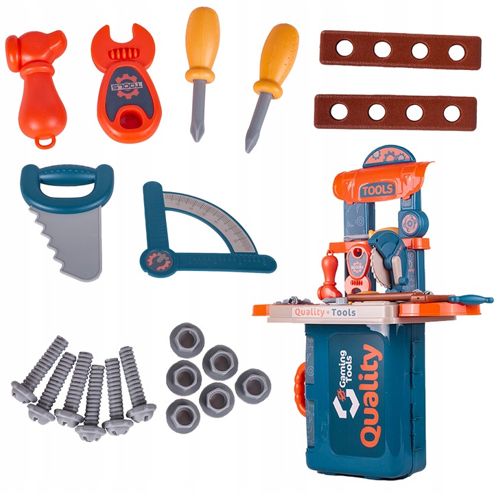 * Masa de lucru contine toate uneltele de care baietii au nevoie pentru a se distra construind sau reparand
