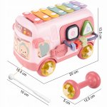 Autobuz interactiv cu Xilofon cu 7 note colorate, si Sortator, 15.5 x 20 x 13.5 cm, Green