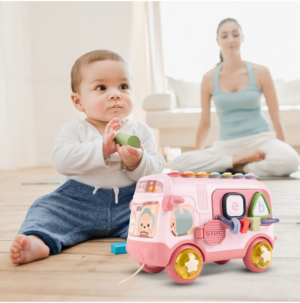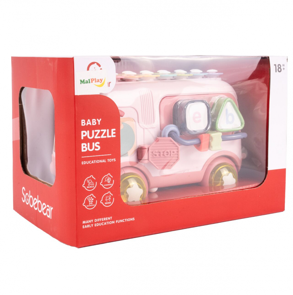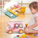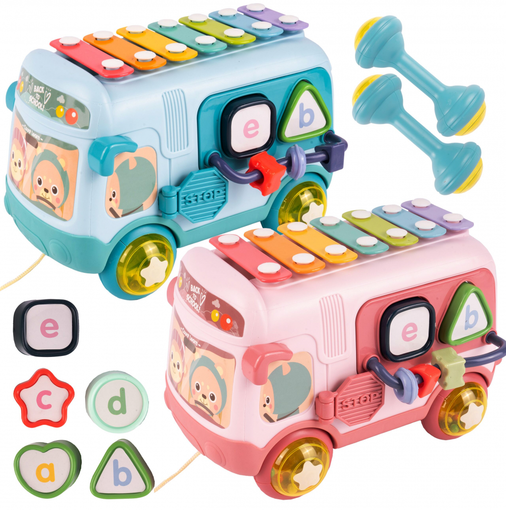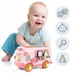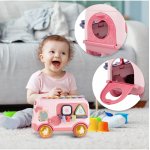 Autobuz interactiv cu Xilofon cu 7 note colorate, si Sortator, 15.5 x 20 x 13.5 cm, Pink