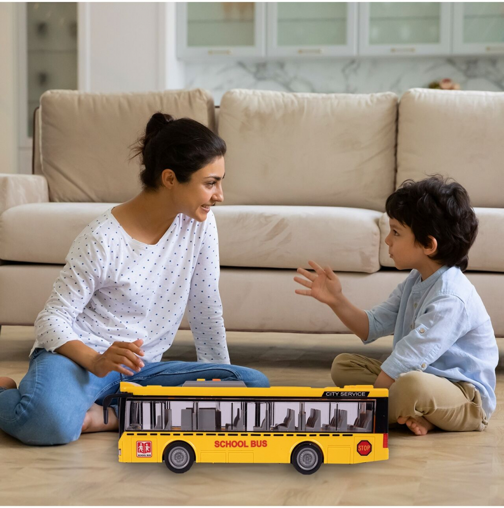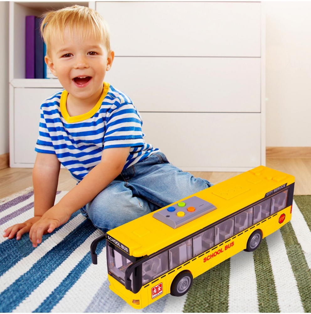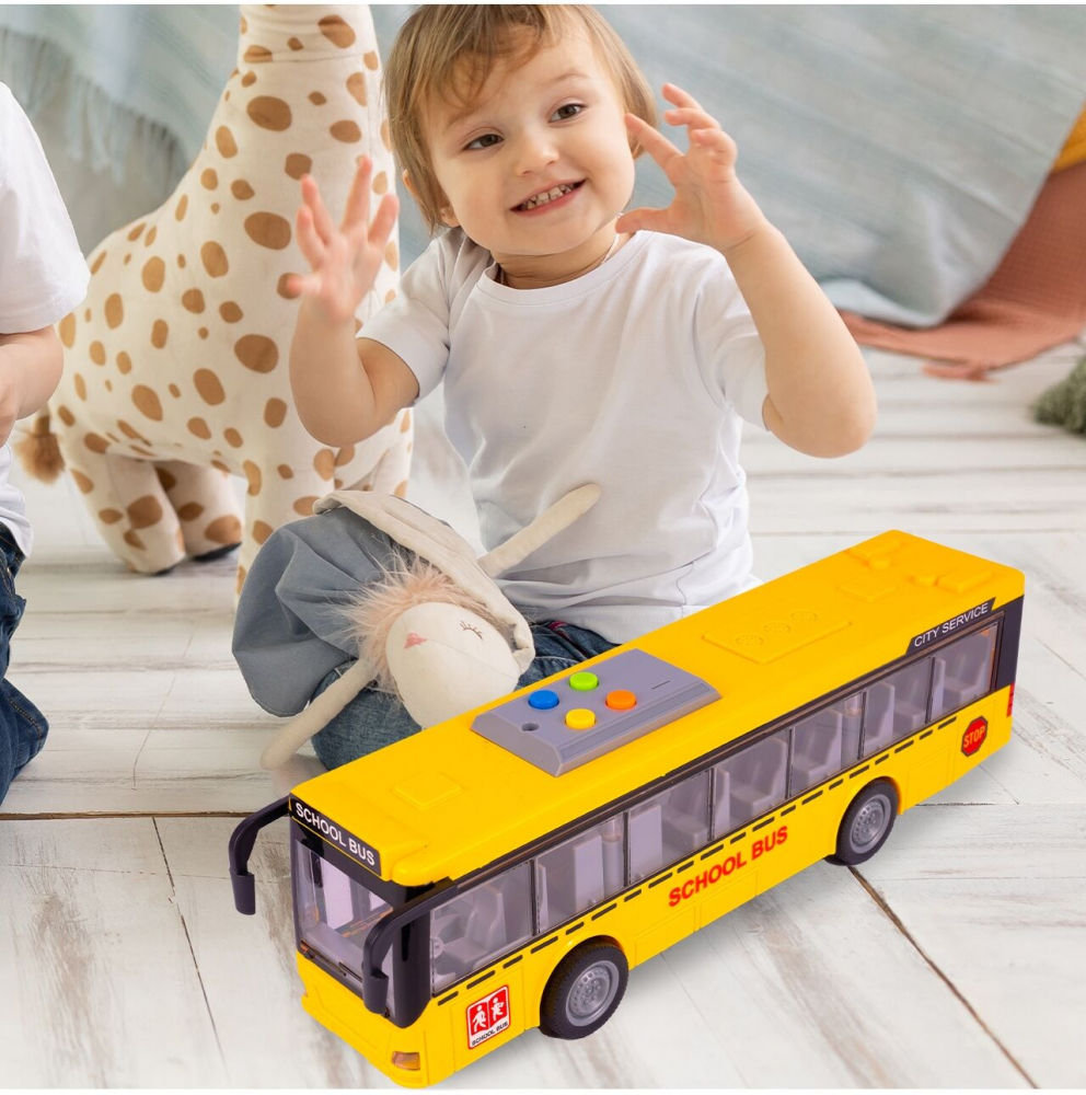 Autobuzul scolar, este o jucarie multifunctionala care dezvolta coordonarea si eficienta motorie a micutilor.