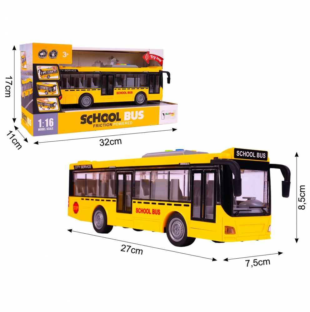 Autobuzul cu sunete si lumini la scara 1:16, este o reprezentare realista a unui vehicul urban de tip ''autobuz scolar'';