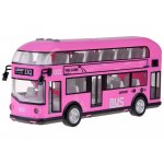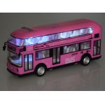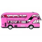 Autobuz pentru copii roz, model realist cu etaj, 3 butoane pe capota, efecte sonore si luminoase, dimensiune 26.5 x 6.5 x 11.5 cm
